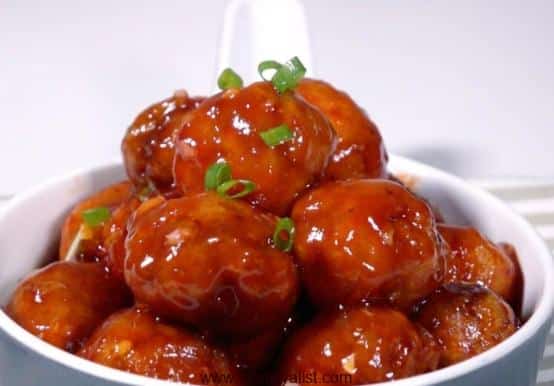 - Toss fried pork and water chestnuts in the sauce until evenly glazed.