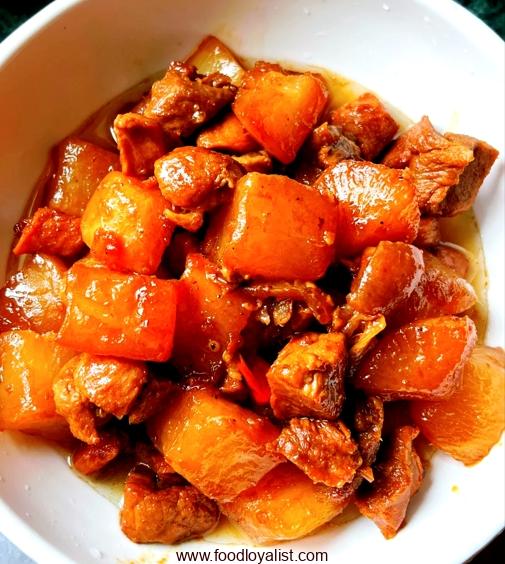 White radish: The radish cubes stewed until transparent are sweet and refreshing, especially suitable for children who dare not eat fatty meat.