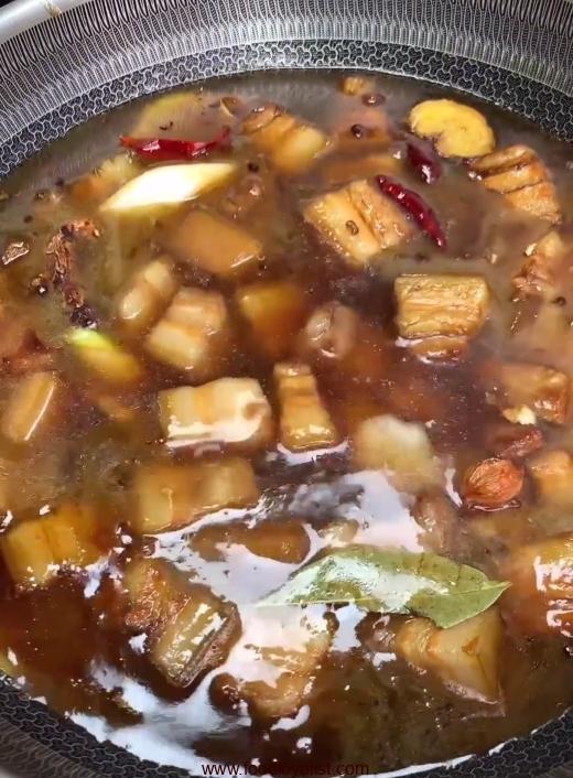 - Add water in the middle: there is not enough water, you have to heat the water! Add half a bowl of cold water, hard to turn the braised meat into “braised stone”
