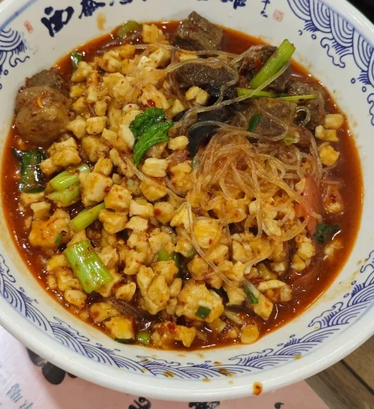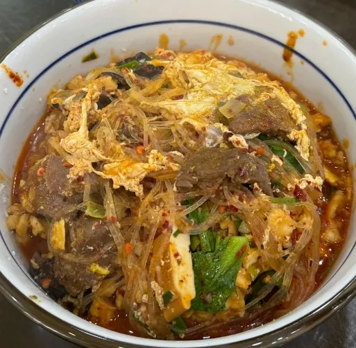 It is a shop with very distinctive features. The chili oil in their hula tang is more fragrant, and they also offer the option of adding a spoonful of cured beef on top of the hula tang, which seems to be an innovation first introduced in Xi’an.